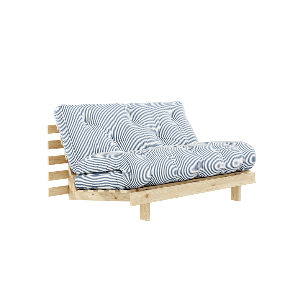Sofa futon, którą łatwo zamienić w materac do spania.