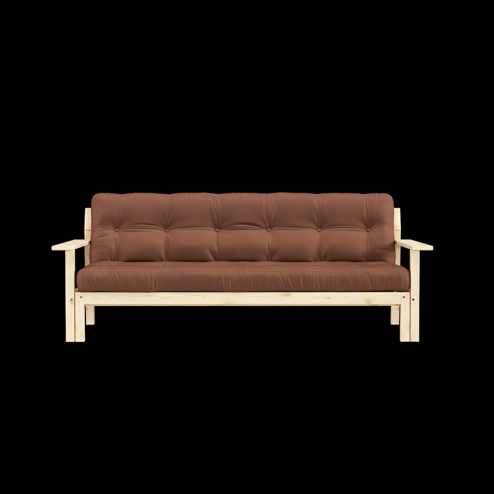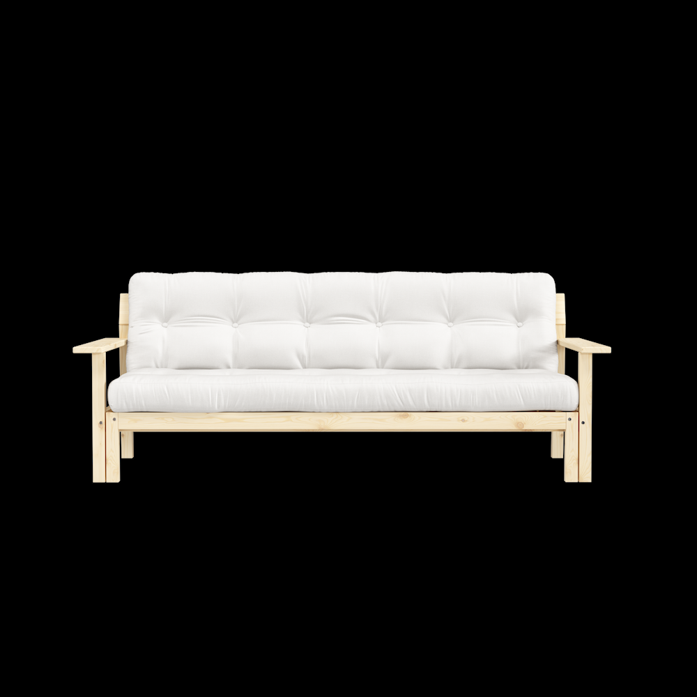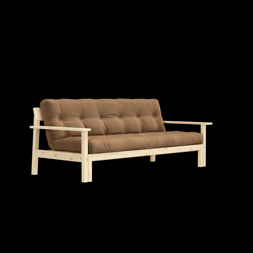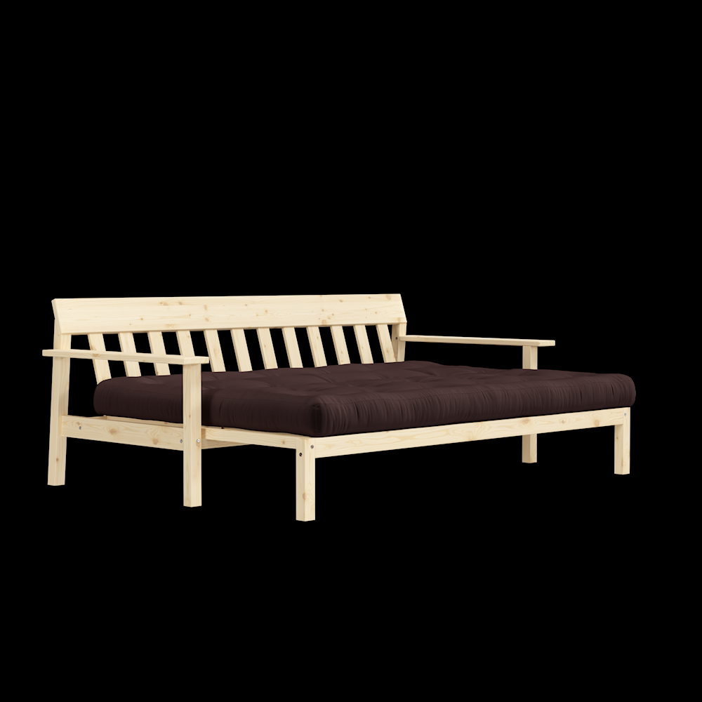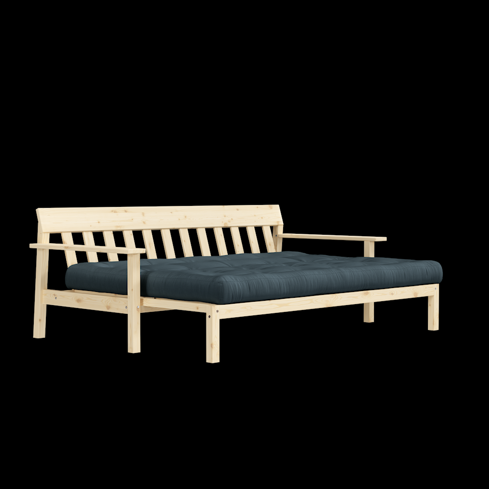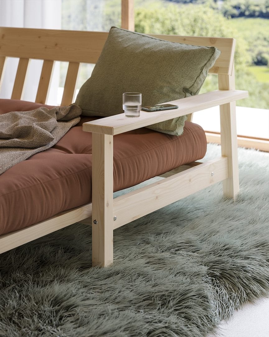 Dzięki jednemu prostemu ruchowi przekształca się z eleganckiej sofy inspirowanej stylem mid-century modern z drewna sosnowego w sofę idealną na wieczory filmowe, czekającą, abyś mógł położyć się, zrelaksować i odpocząć.