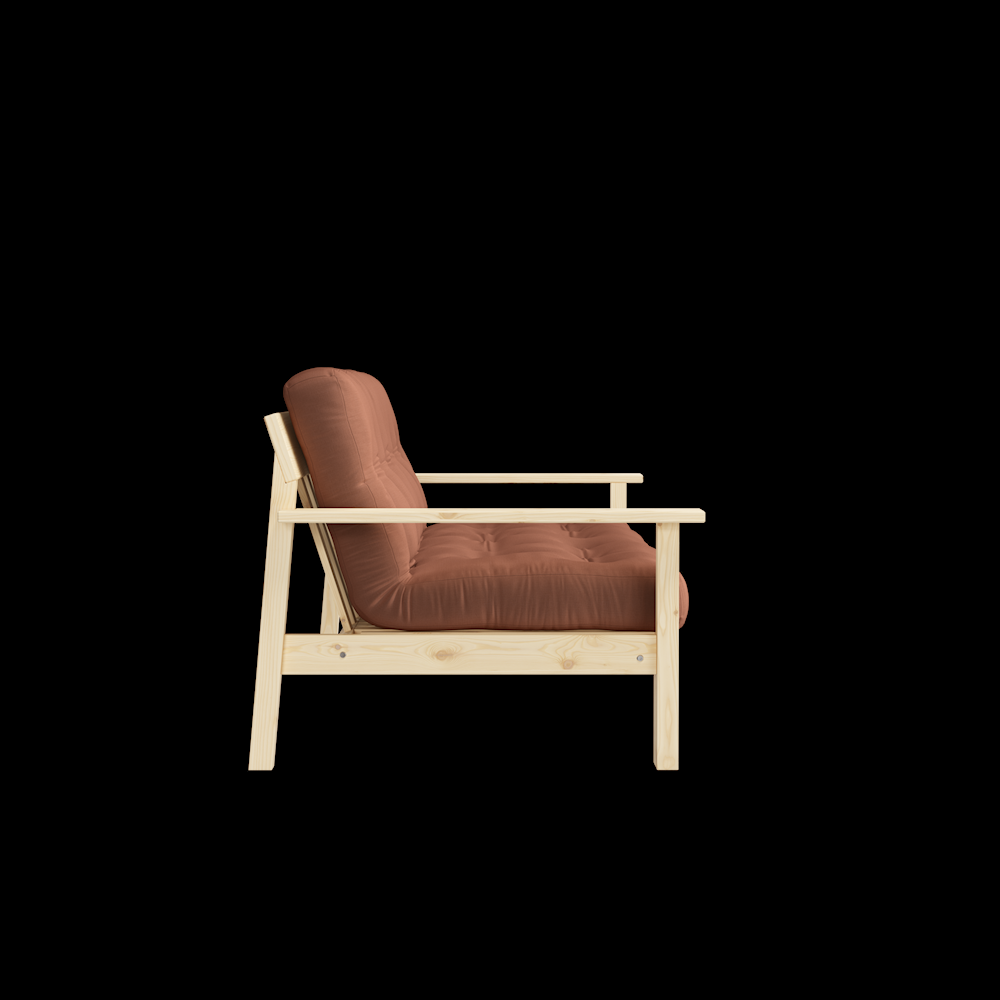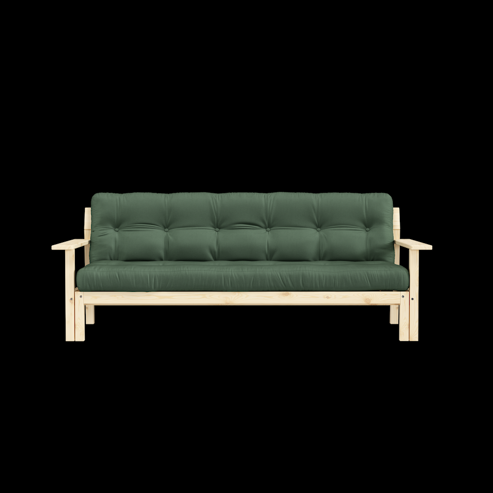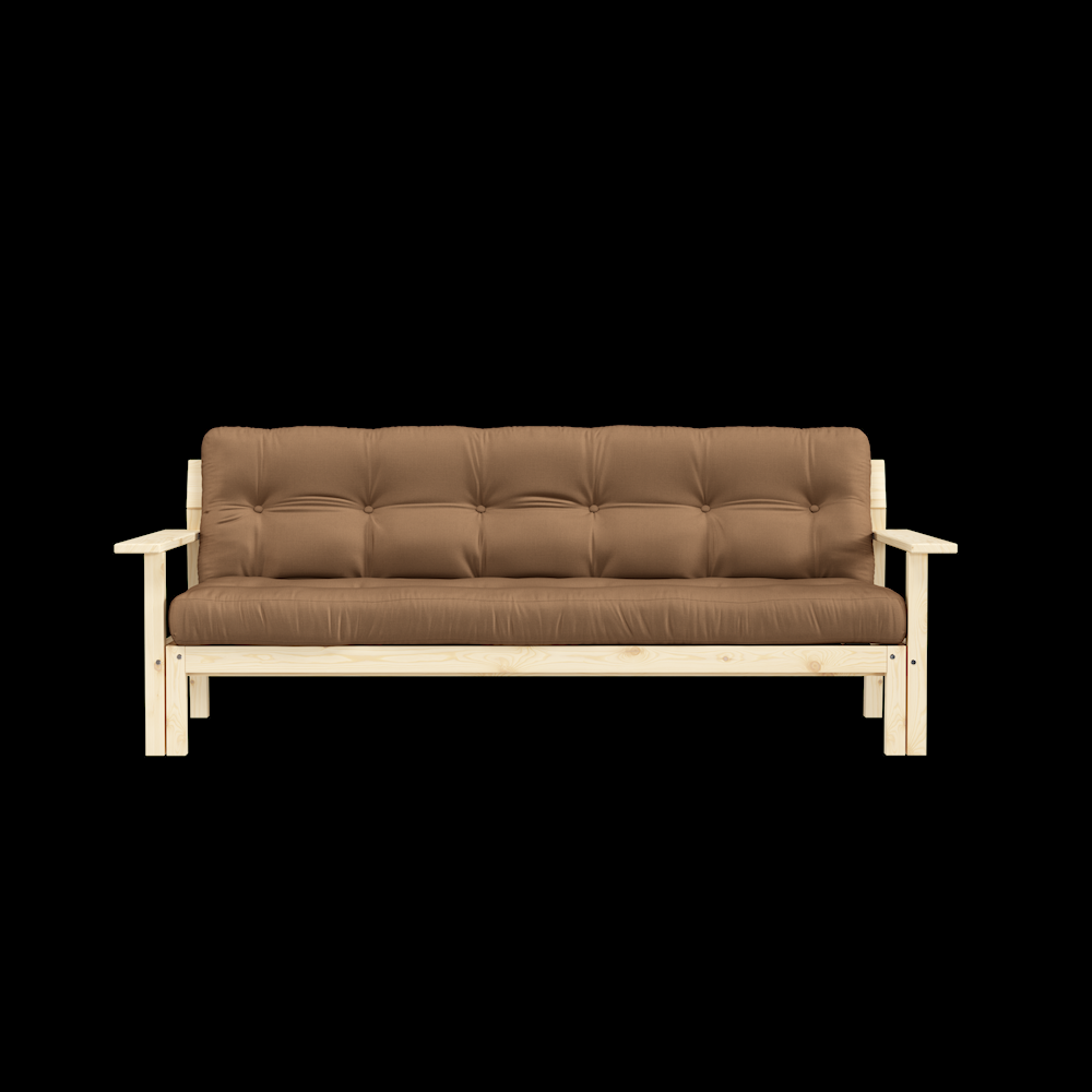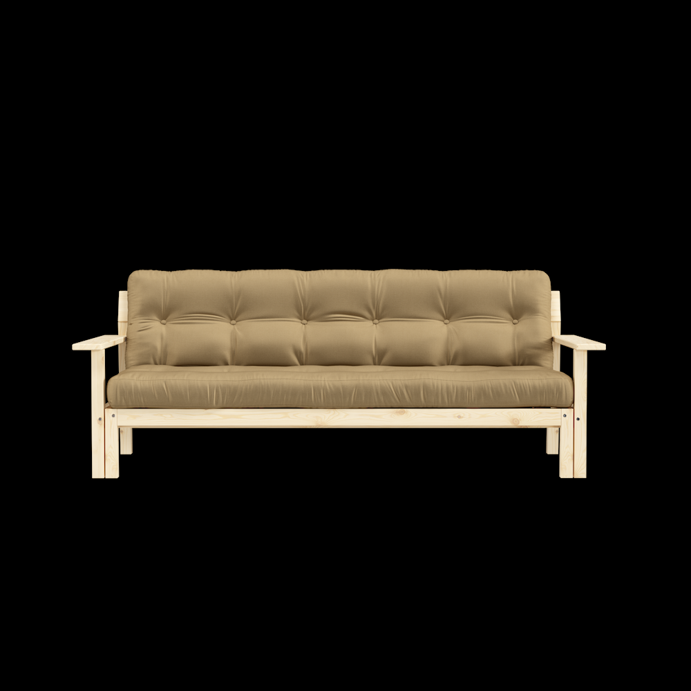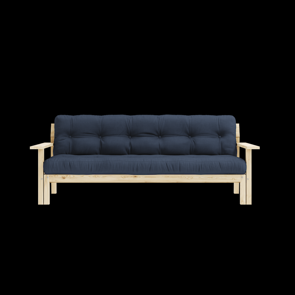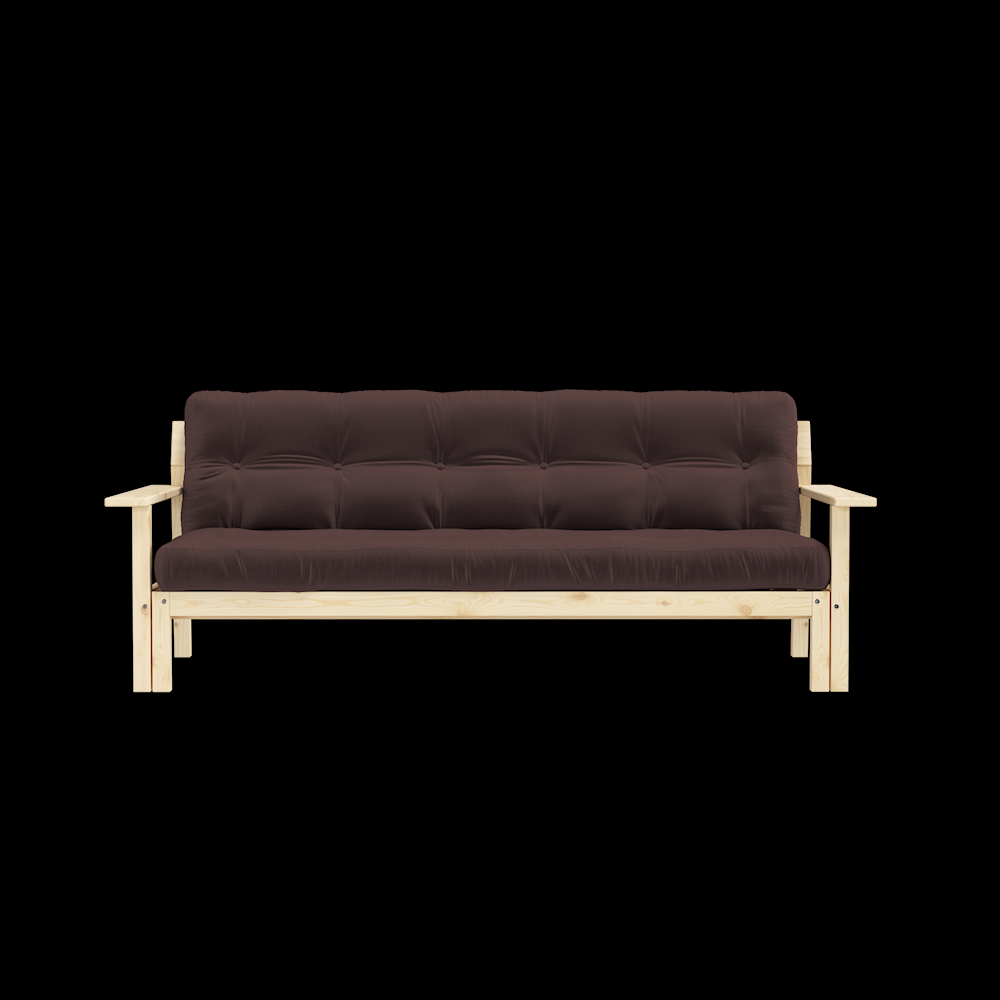 Dzięki jednemu prostemu ruchowi przekształca się z eleganckiej sofy inspirowanej stylem mid-century modern z drewna sosnowego w sofę idealną na wieczory filmowe, czekającą, abyś mógł położyć się, zrelaksować i odpocząć.