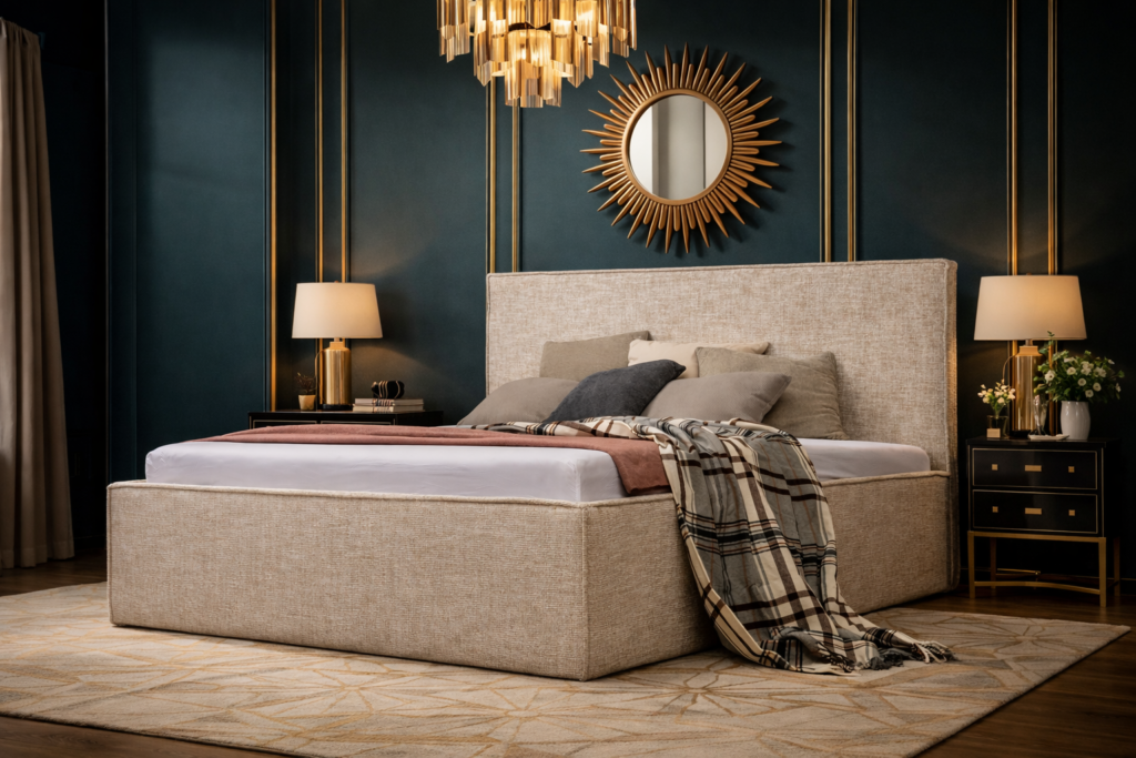 Wyraziste detale sprawiają, że łóżko staje się nie tylko miejscem do spania, ale również efektownym elementem dekoracyjnym sypialni.