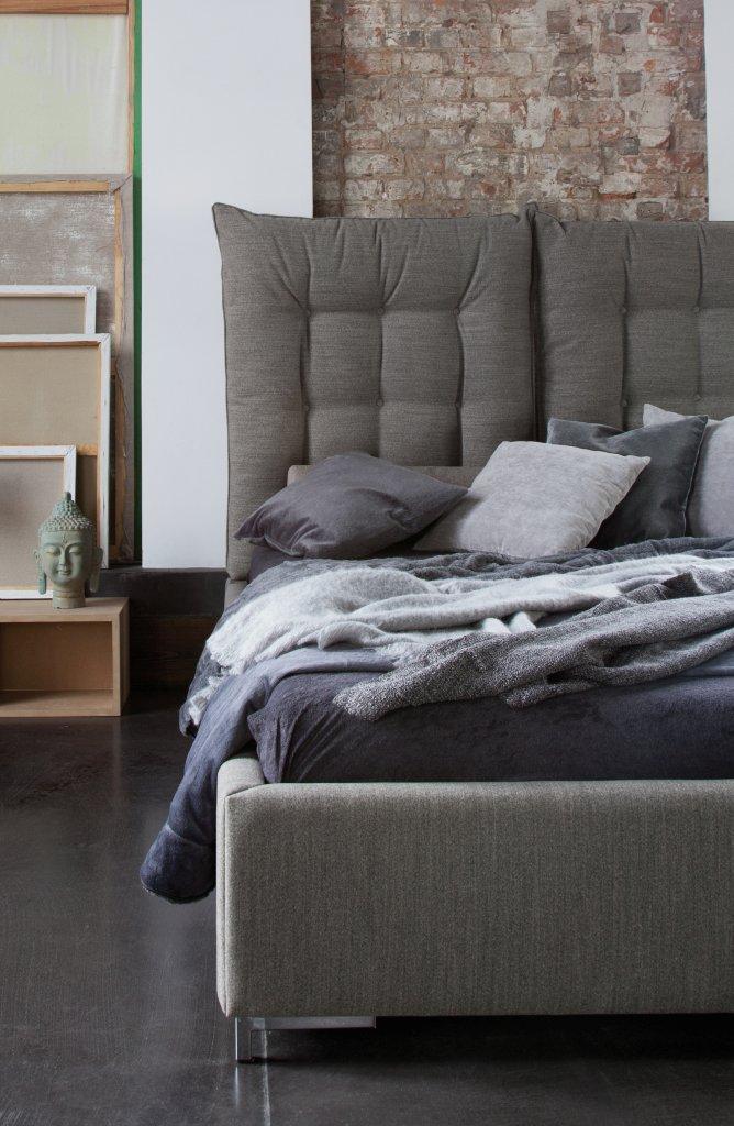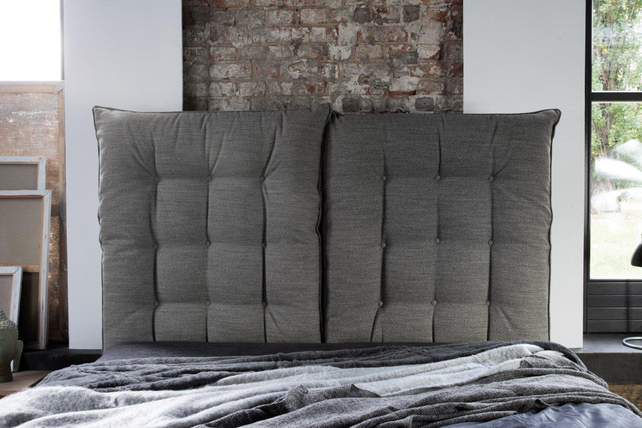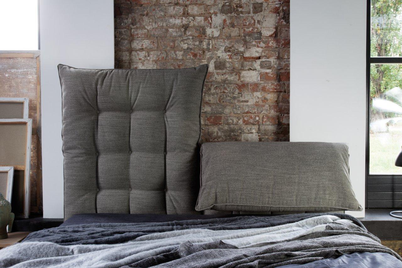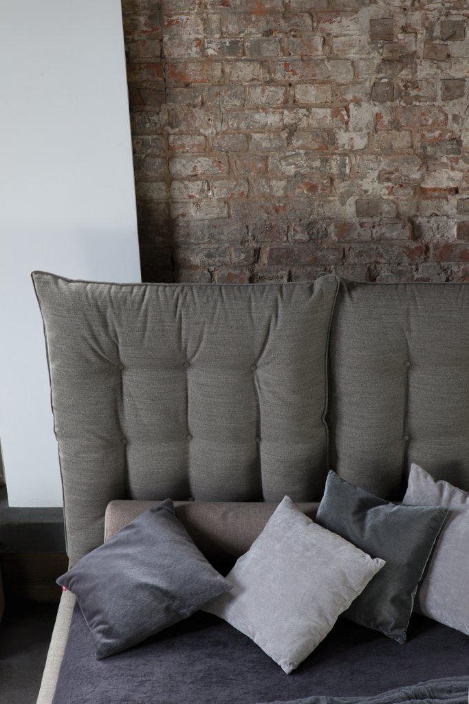 Jego największym wyróżnikiem jest wezgłowie złożone z dwóch miękkich, pikowanych poduch, które można ustawić w pozycji dopasowanej do siedzenia. Wyprostowane stanowią efektowną dekorację, a złożone tworzą wygodne i stabilne podparcie dla pleców.