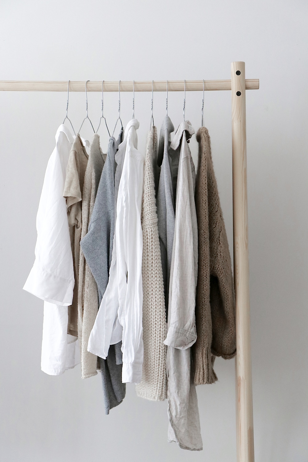 Minimalistyczny wieszak na ubrania z drewna sosnowego. Dostępny w dwóch rozmiarach, w wersji z lustrem lub bez.