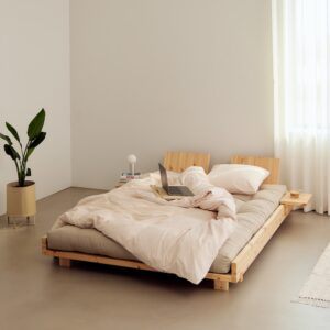 Dużą zaletą łóżka drewnianego do sypialni jest możliwość wyboru materaca, który najlepiej odpowiada naszym potrzebom i oczekiwaniom. Może to być klasyczny materac europejski o klasie twardości wyrażonej parametrem H lub unikalny futon inspirowany kulturą Japonii. Futony idealnie komponują się z łóżkami dębowymi oraz sosnowymi. Z projektowania łóżek na styl japoński słynie przede wszystkim marka Karup Design, której jesteśmy dystrybutorem.