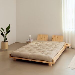 Dużą zaletą łóżka drewnianego do sypialni jest możliwość wyboru materaca, który najlepiej odpowiada naszym potrzebom i oczekiwaniom. Może to być klasyczny materac europejski o klasie twardości wyrażonej parametrem H lub unikalny futon inspirowany kulturą Japonii. Futony idealnie komponują się z łóżkami dębowymi oraz sosnowymi. Z projektowania łóżek na styl japoński słynie przede wszystkim marka Karup Design, której jesteśmy dystrybutorem.